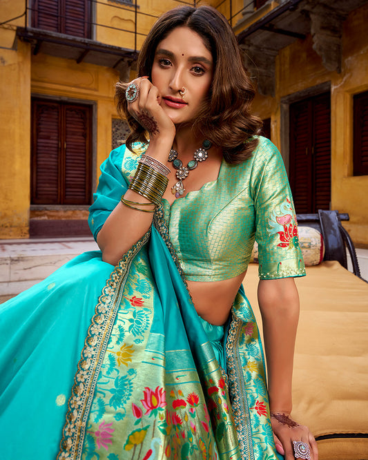 Teal Green Color Soft Silk Paithani Lehenga Choli