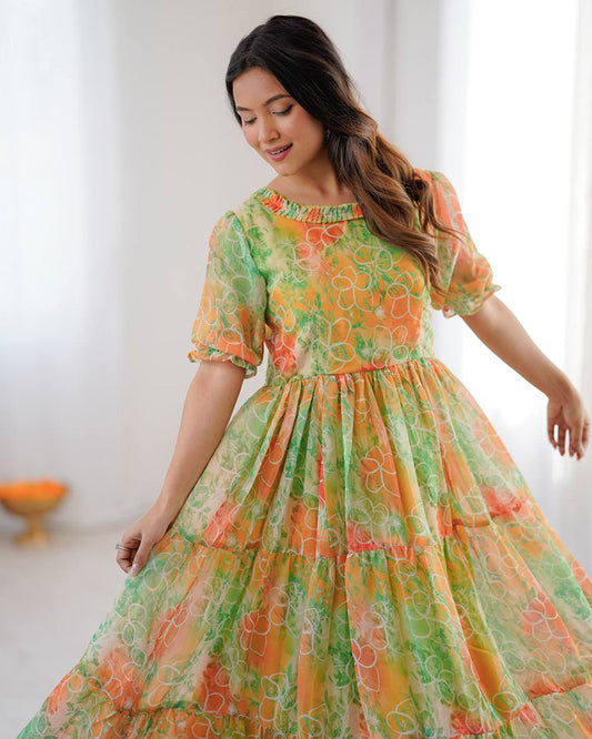 Peach Color Digital Printed Soft Organza Anarkali Suit