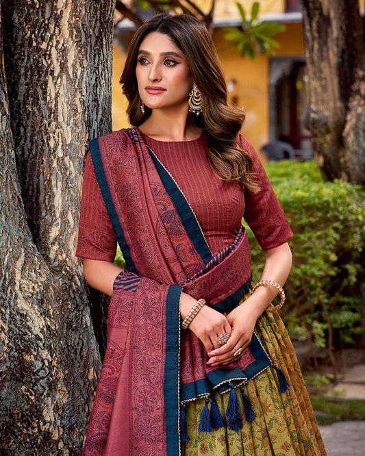Copper Color Vichitra Silk Printed Lehenga Choli