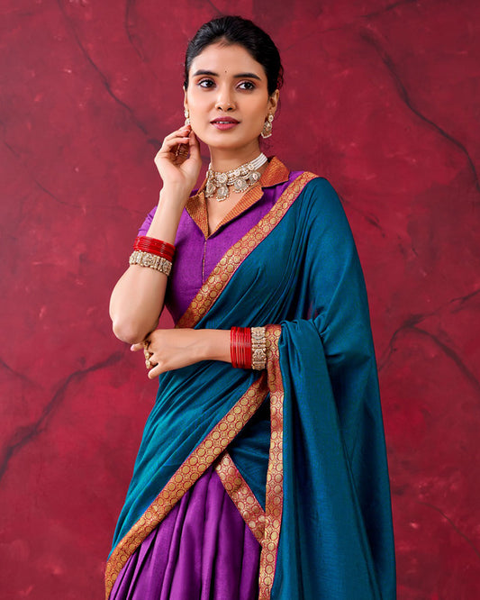 South Indian Style Purple Color Narayan Pet Cotton Half Saree