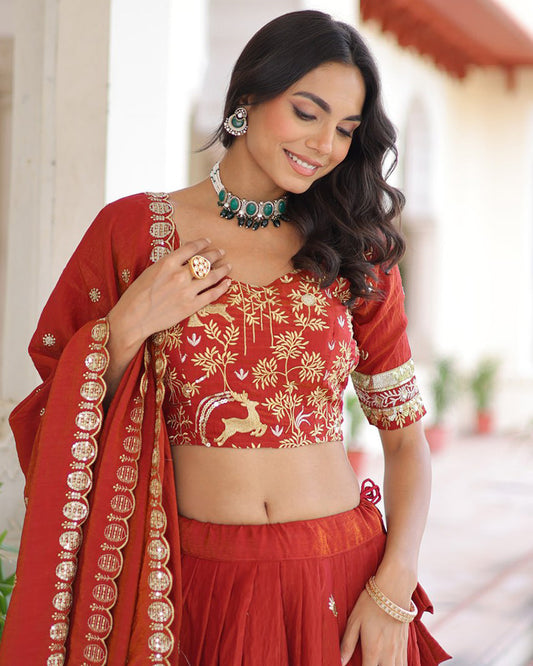 Red Color Vichitra Silk Sequence Embroidered Lehenga Choli