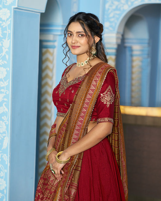 Elegant Maroon Embroidered Vichitra Silk Lehenga Choli