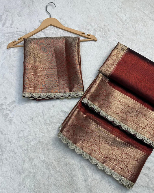 Maroon Color Banarasi Tissue Saree