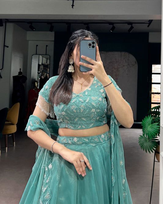 Sky Blue Color Gold Coin Embroidered Lehenga Choli