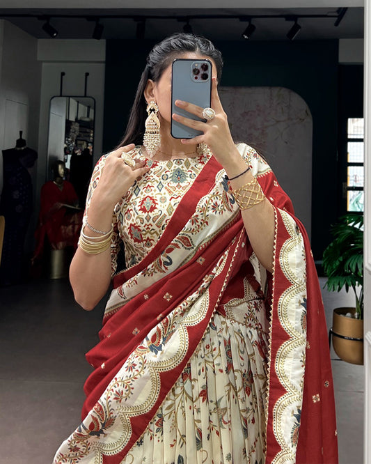 Off-White Color Tasar Silk Foil Printed Lehenga Choli