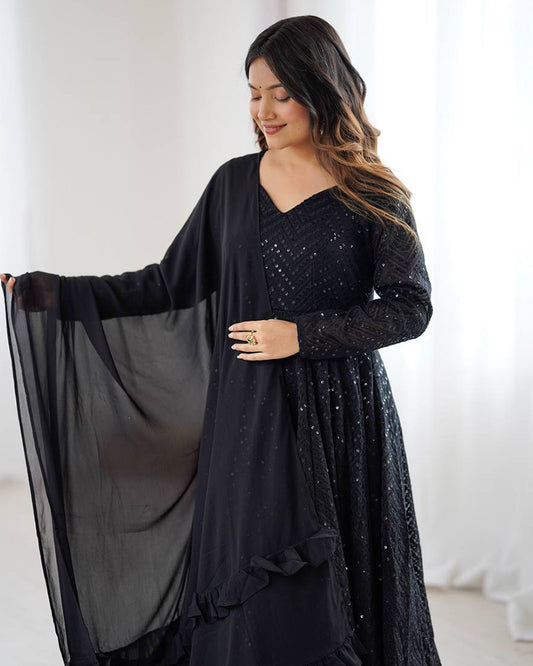 Black Color Georgette Lucknowi Three Piece Anarkali Suit