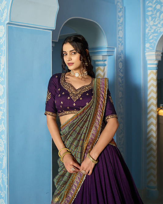 Elegant Dark Purple Embroidered Vichitra Silk Lehenga Choli
