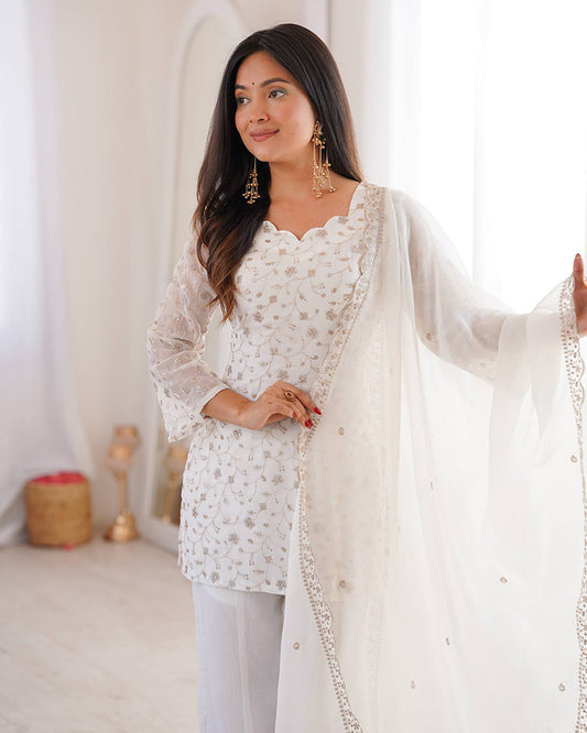 Off-White Color Crunchy Silk Embroidered Plazzo Suit