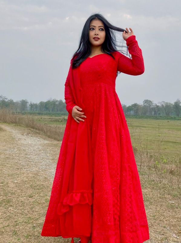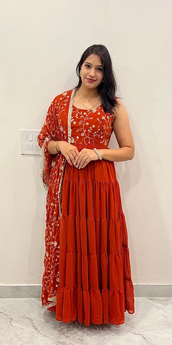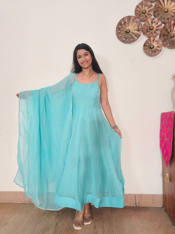 This anarkali suit set beautifully blends tradition with style. Really looking stylish and graceful. Fitting is too good highly recommended.The quality,colour of the dress is very very good.