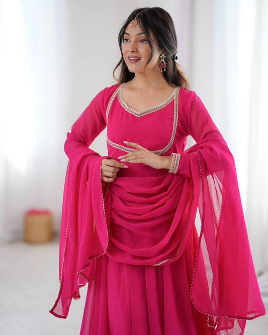 Pink Color Georgette Three Piece Anarkali Suit