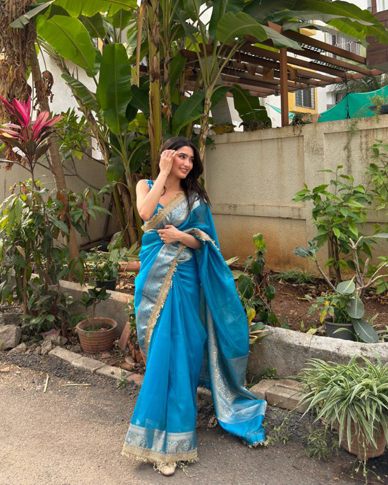 Blue Color Banarasi Tissue Silk Saree