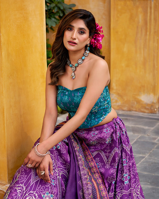 Purple Color Vichitra Silk Printed And Embroidered Lehenga Choli