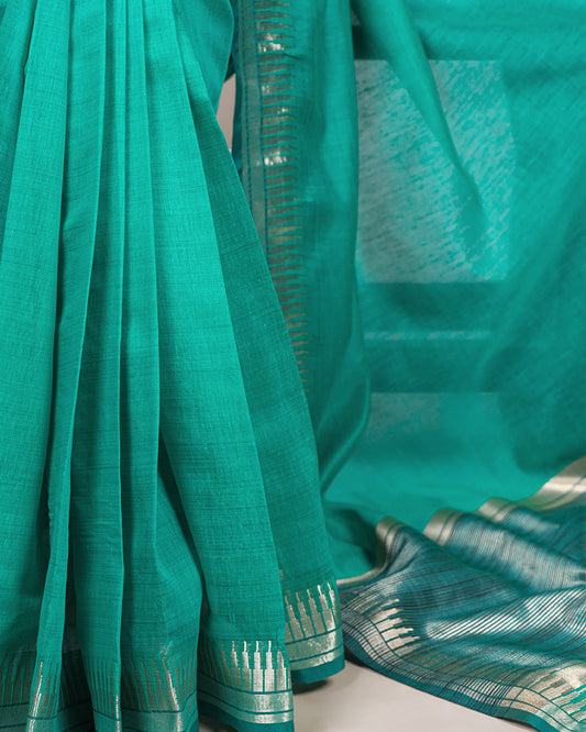 Teal Green Color Cotton Silk Zari Weaving Saree