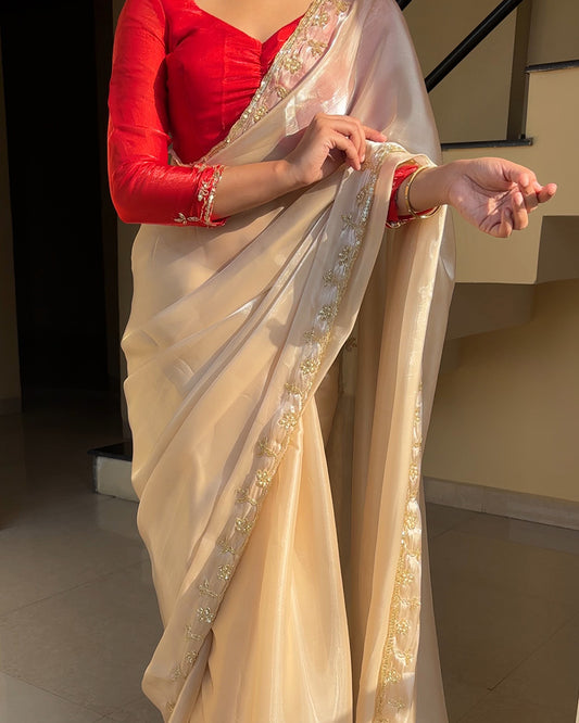 Cream Color Pure Soft Organza Embroidered Saree