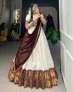 Cream Color Kanchipuram Silk Designer Half Saree
