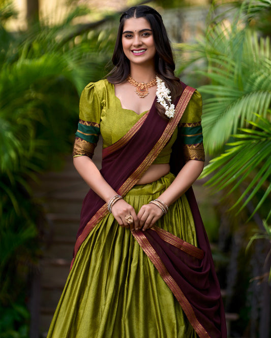 Olive Green Color Cotton Silk Zari Weaving Saree