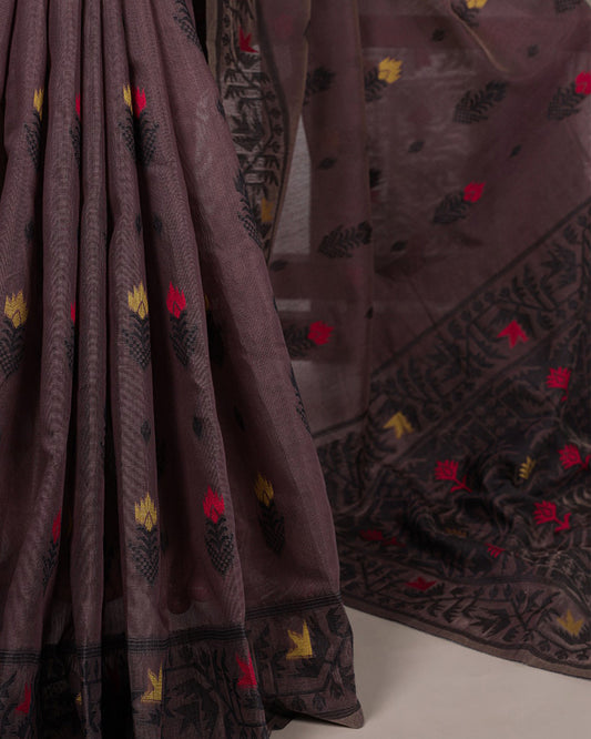 Off-White Color Tasar Silk Ethnic Printed Saree