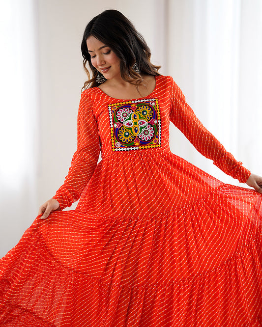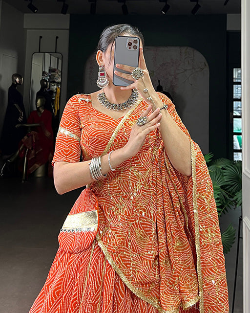 Orange Color Rayon Bnahdej Print Navratri Lehenga Choli