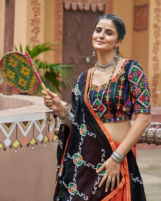 Orange Color Viscose Rayon Navratri Lehenga Choli