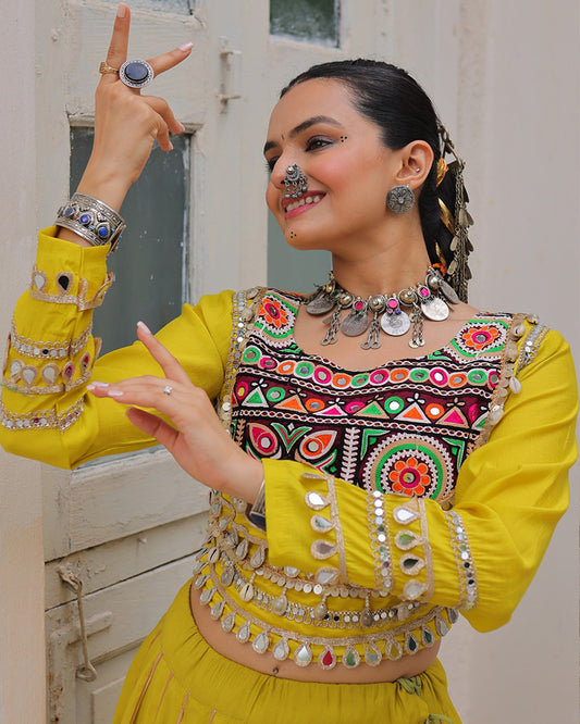 Parrot Green Color Pure Rayon Gamthi Navratri Lehenga Choli
