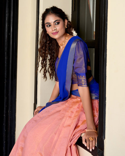 Peach Color Zari Kota Embroidered Half Saree
