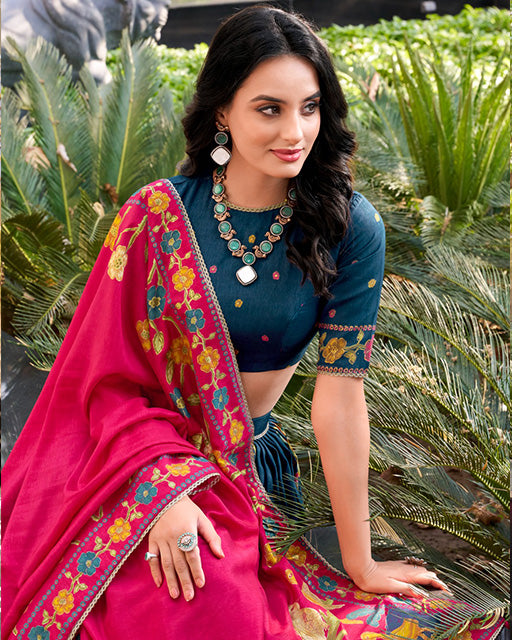 Pink And blue Color Banarasi Silk Saree