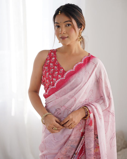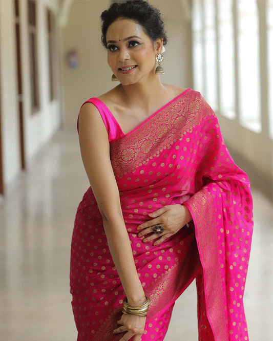 Pink Color Banarasi Jacquard Zari Weaving Saree