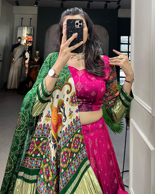 Pink Color Gaji Silk Digital Printed Lehenga Choli