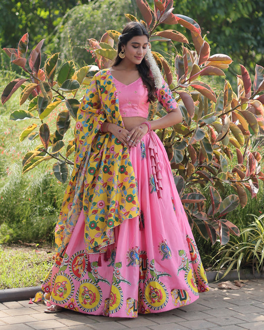 Pink Color Dola Silk Designer Kalamkari Print Half Saree
