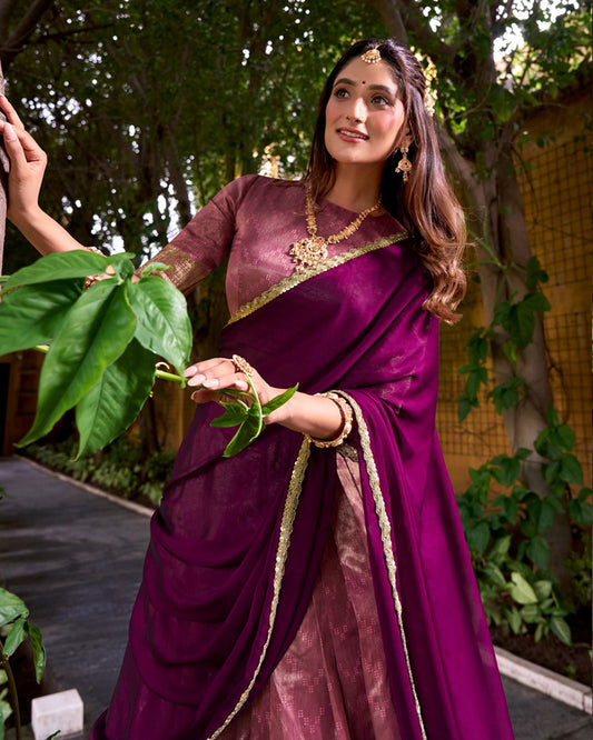 Pink Color Dupion Silk Zari Weaving Half Saree