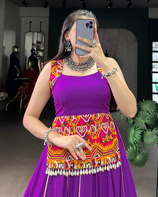 Purple Color Pure Rayon Gamthi Navratri Lehenga Choli