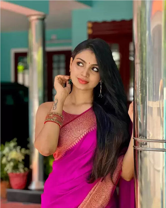 Rani Pink Color Banarasi Soft Silk Saree