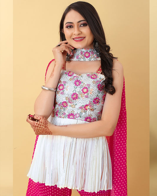 Rani Pink Color Georgette Embroidery Work Three Piece Sharara Suit
