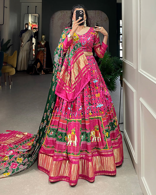 Rani Pink Color Gaji Silk Printed Navratri Lehenga Choli