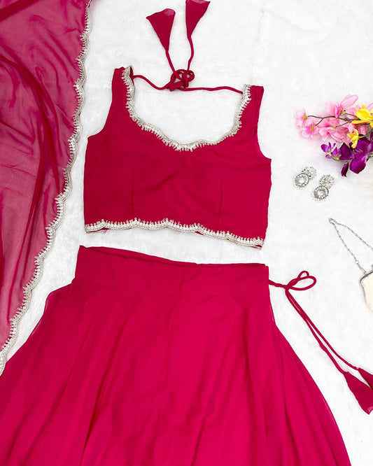 Rani Pink Color Georgette Embroidered Lehenga Choli
