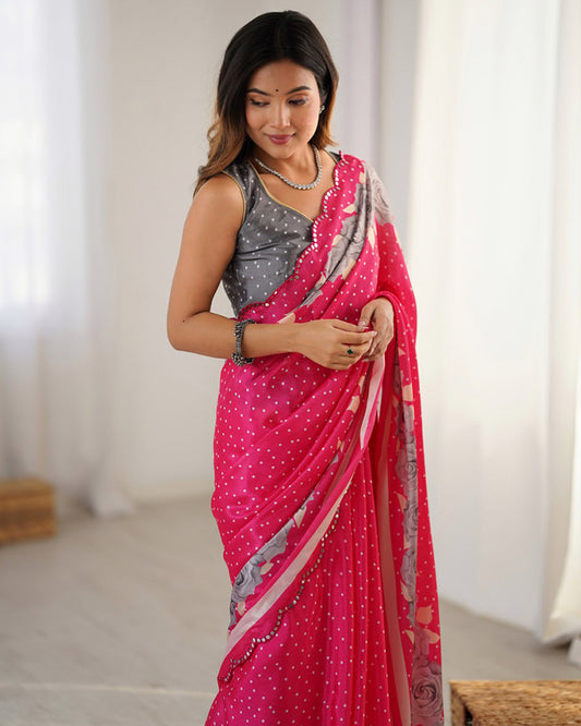 Rani Pink Color Chinnon Silk Digital Printed Saree