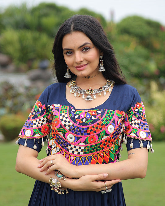 Royal Blue Color Real Mirror Work Rayon Navratri Lehenga Choli