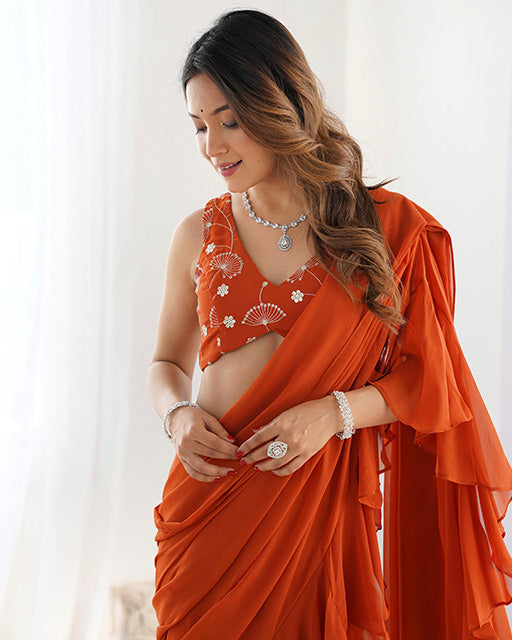 Rust Orange Color Rangoli Crush Embroidered Lehenga Choli