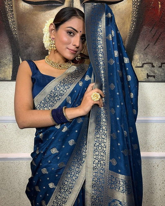 Royal Blue Color Small Butti Design Banarasi Soft Silk Saree