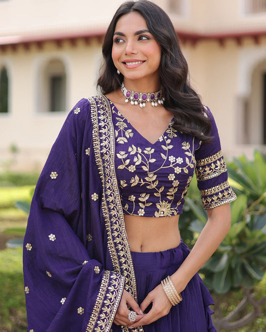 Royal Purple Color Vichitra Silk Embroidered Lehenga Choli