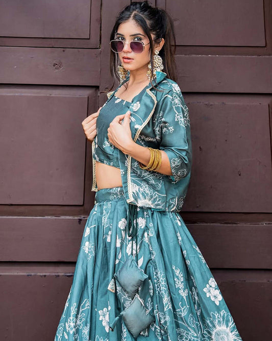 Sea Green Color Fandy Crush Printed Lehenga Choli