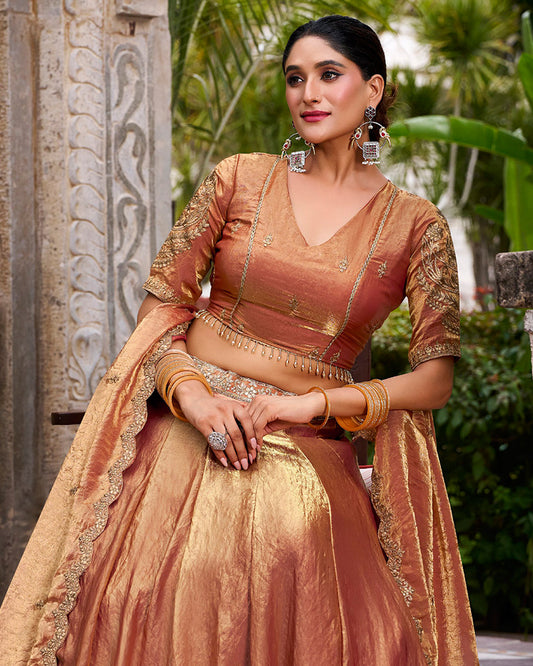 Rust Orange Color Tasar Silk Sparkle Lehenga Choli