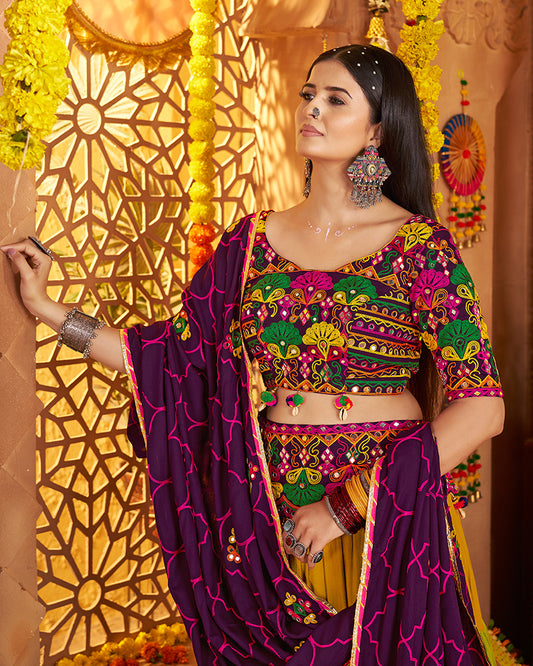 Traditional Purple Color Chanderi Navratri Lehenga Choli