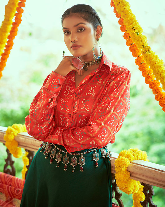 Traditional Rust Orange Color Bandhani Print Navratri Kurti