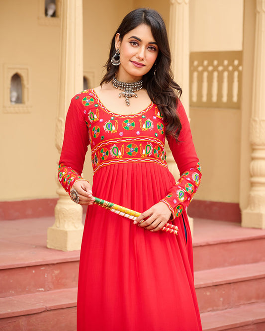 Traditional Red Pure Rayon Embroidered Navratri Kurti