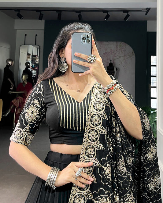 Traditional Black Color Chanderi Navratri Lehenga Choli