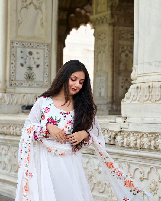 Vasundhara Singh In Off White Floral Soft Georgette Three Piece Anarkali Suit