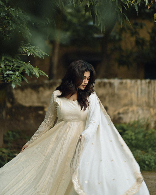 Triparna Dey In White Color Pure Chanderi Silk Three Piece Anarkali Suit