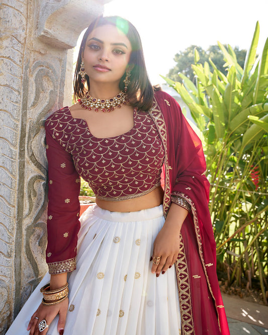 White Color Georgette Thread Embroidered Lehenga Choli