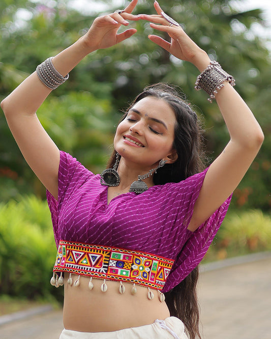 White Color Kora Cotton Lehenga With Purple Choli